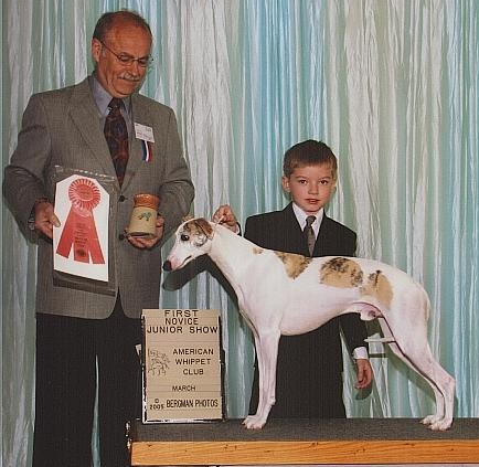 Handler extraordinaire Reece Clayton with Rhythm winning Junior Novice at the 2005 AWC National in Phoenix Arizona.